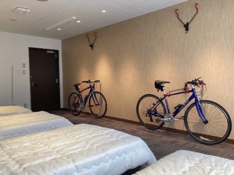 サイクリングでおいでの方は、客室で自転車と一緒に泊まれます。