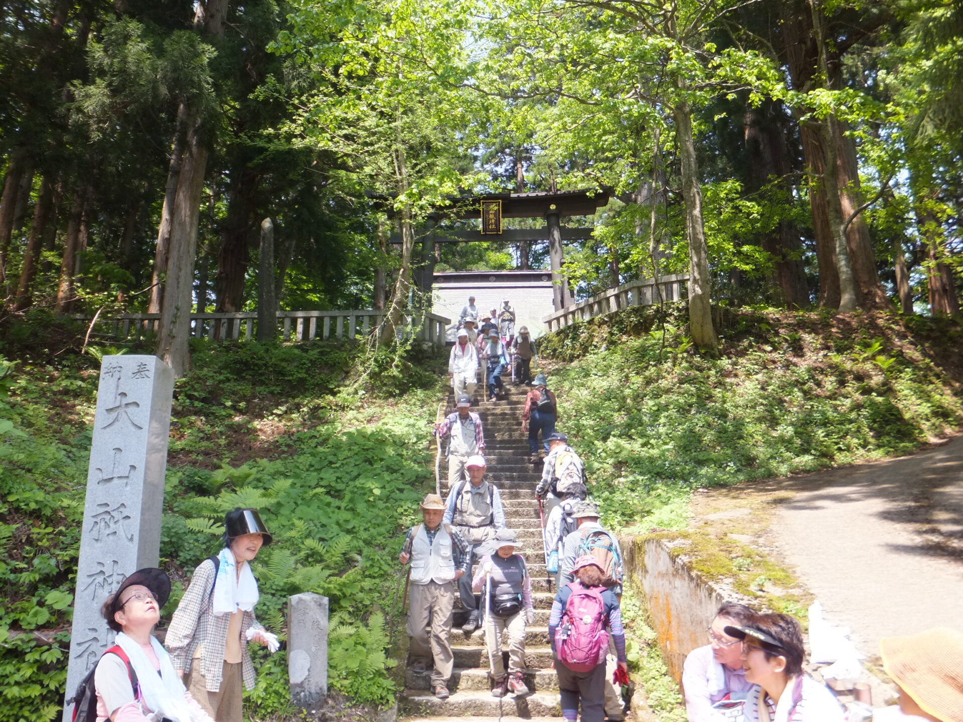 遙拝殿から4km先に鎮座する御本社までの参道は、樹齢450年の杉並木や2つの滝、道祖神などがあり、山の息づかいが聞こえそうな静寂に包まれた癒しのトレッキングコースとしても親しまれています。大山まつり期間中は、この参道をガイド付きで参拝するトレッキングイベントが開催されます。
