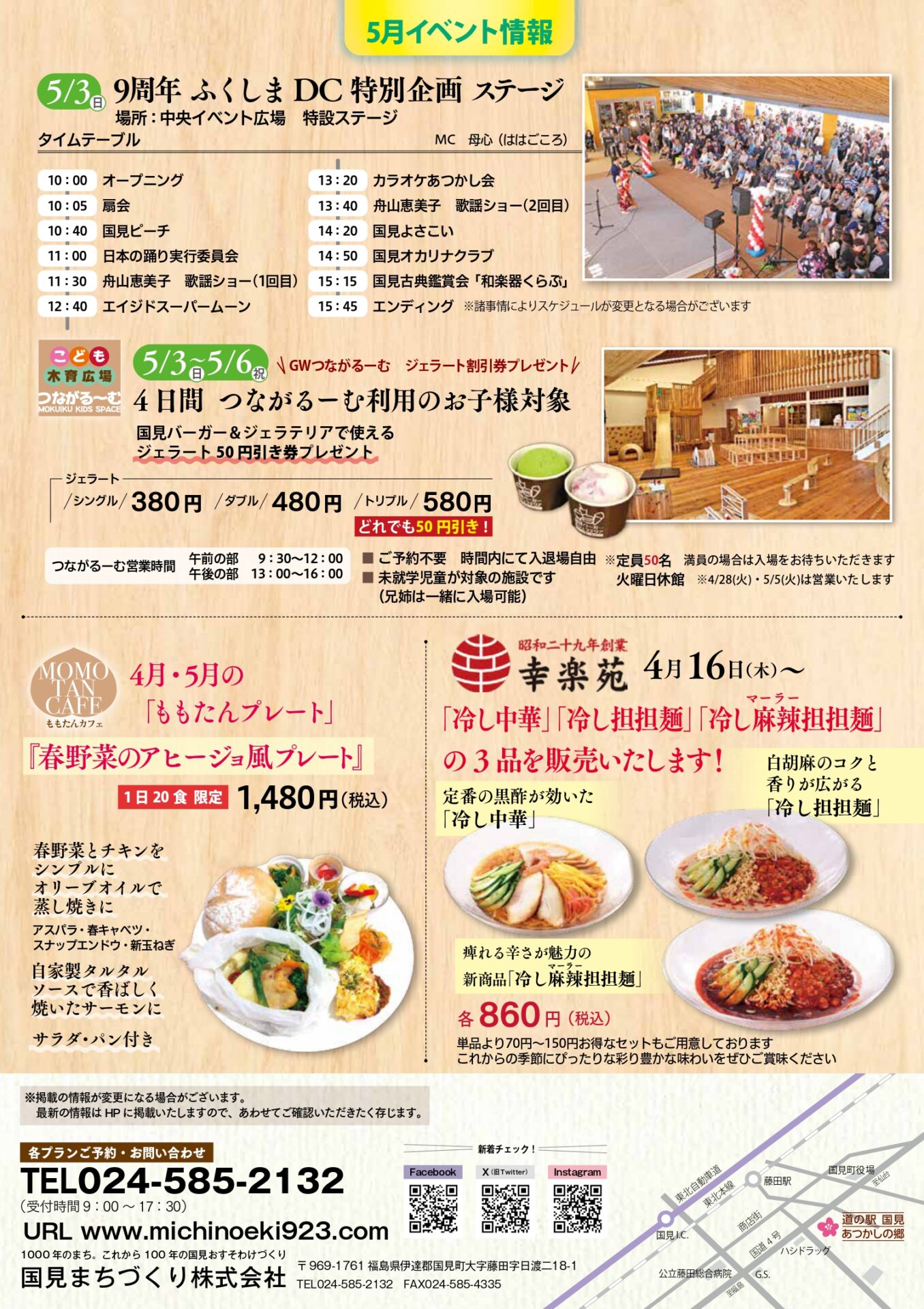 また、道の駅国見あつかしの郷が9周年となる大型連休では、県外来訪者も楽しめるステージイベントなどを開催し、来訪者が楽しめるイベントを開催します!