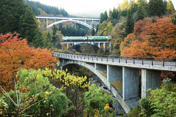 JR東日本が主催するハイキングイベントで、三島町は「日本で最も美しい村」をめぐるコースを設定しました。会津宮下駅を起点に、只見川の水面を間近に眺めつつ、小さな集落群たたずまいを訪ねます。季節ごとの変化が魅力的です。