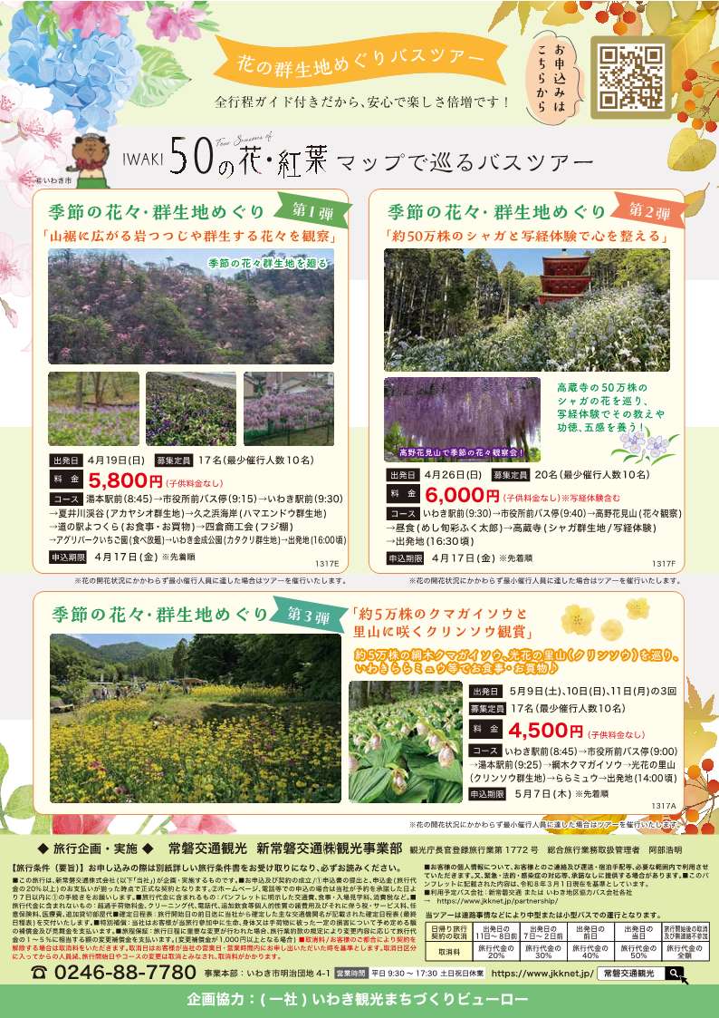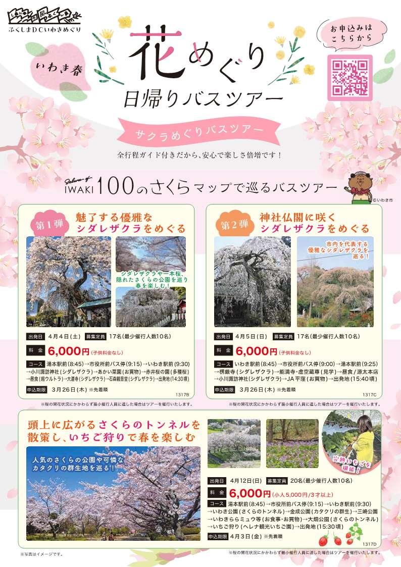 シダレザクラやシャガなど春を満喫できる花の鑑賞コースのほか、いちご狩りなどいわきの美味しさを味わうことができるコースもあります。