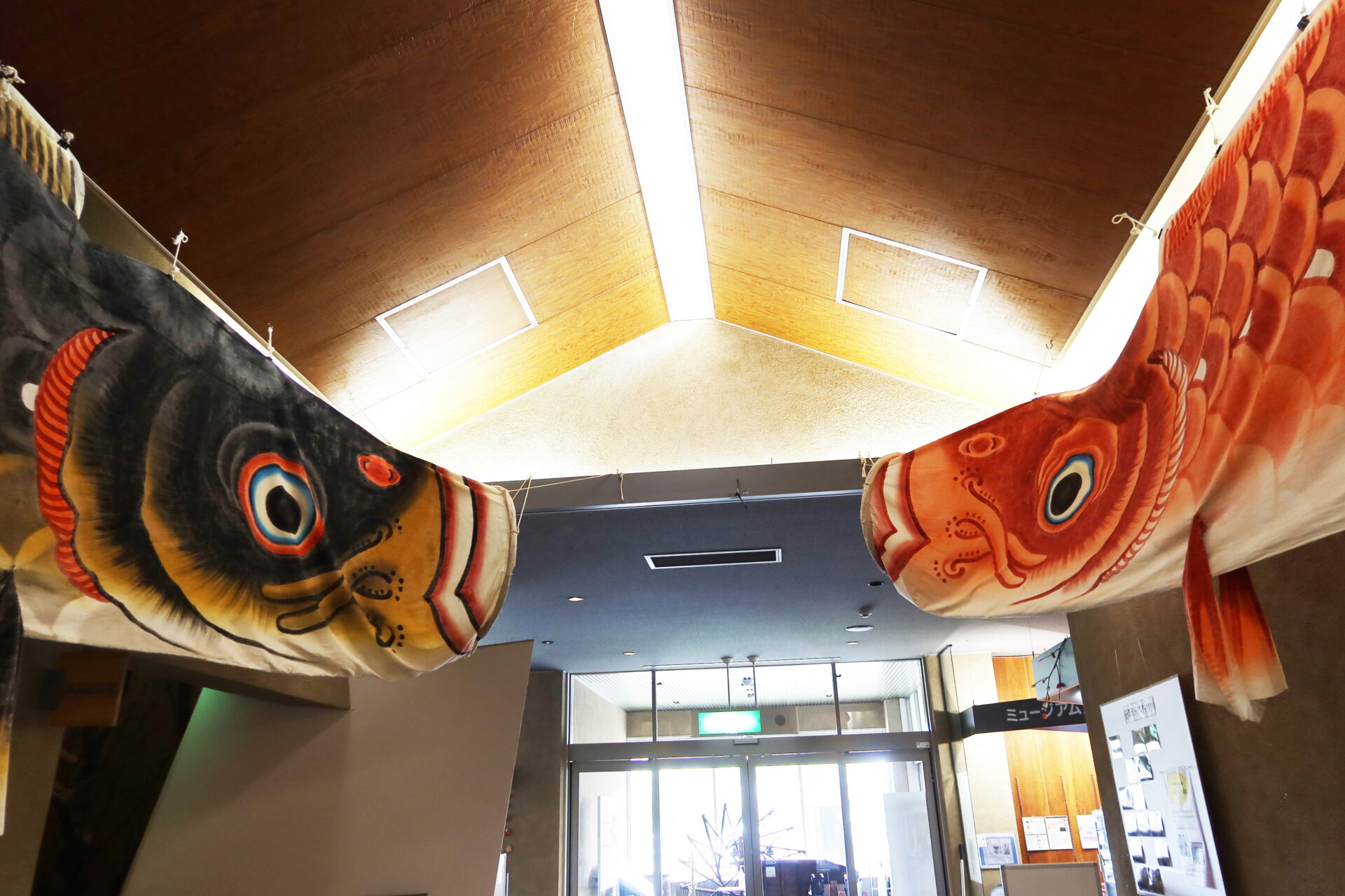 端午の節句に合わせ、市民の方々より寄贈された絵のぼり、鯉のぼり、節句飾りなどを学習管理棟休憩コーナーに展示するとともに、民家ゾーンでは、古民家の軒先に厄除けの菖蒲と蓬を挿します。