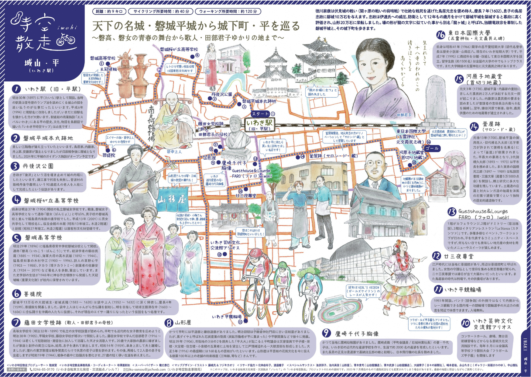 商店街の真ん中にあるゲストハウスFAROに宿泊して、翌日は「いわき時空散走マップ」を片手に、江戸時代から明治・大正~現在まで時空を超えて、ゲストハウススタッフと一緒にまちを巡ります。いわき駅のすぐ裏に…