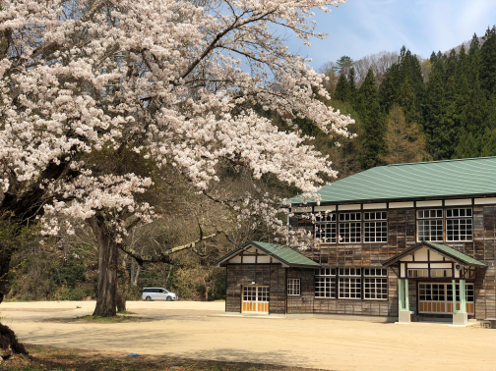昭和12年建築の木造校舎は、100名を超える生徒の声が響いていた時代もありましたが、昭和55年に廃校となり、今は、山並みを背景としたイチョウの大木との景観が、昭和村を訪れる多くの方々を魅了し、四季折々…