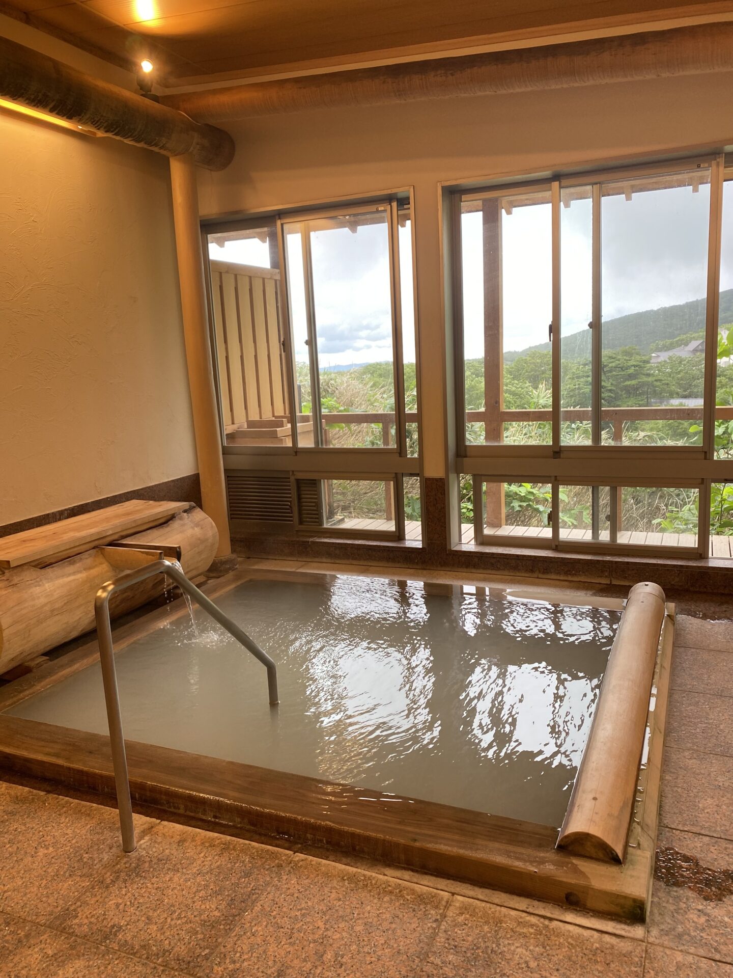 全館畳敷きで自家源泉(炭酸水素塩泉・源泉かけ流し)を使用した12種類のお風呂でのんびり、ゆっくり。