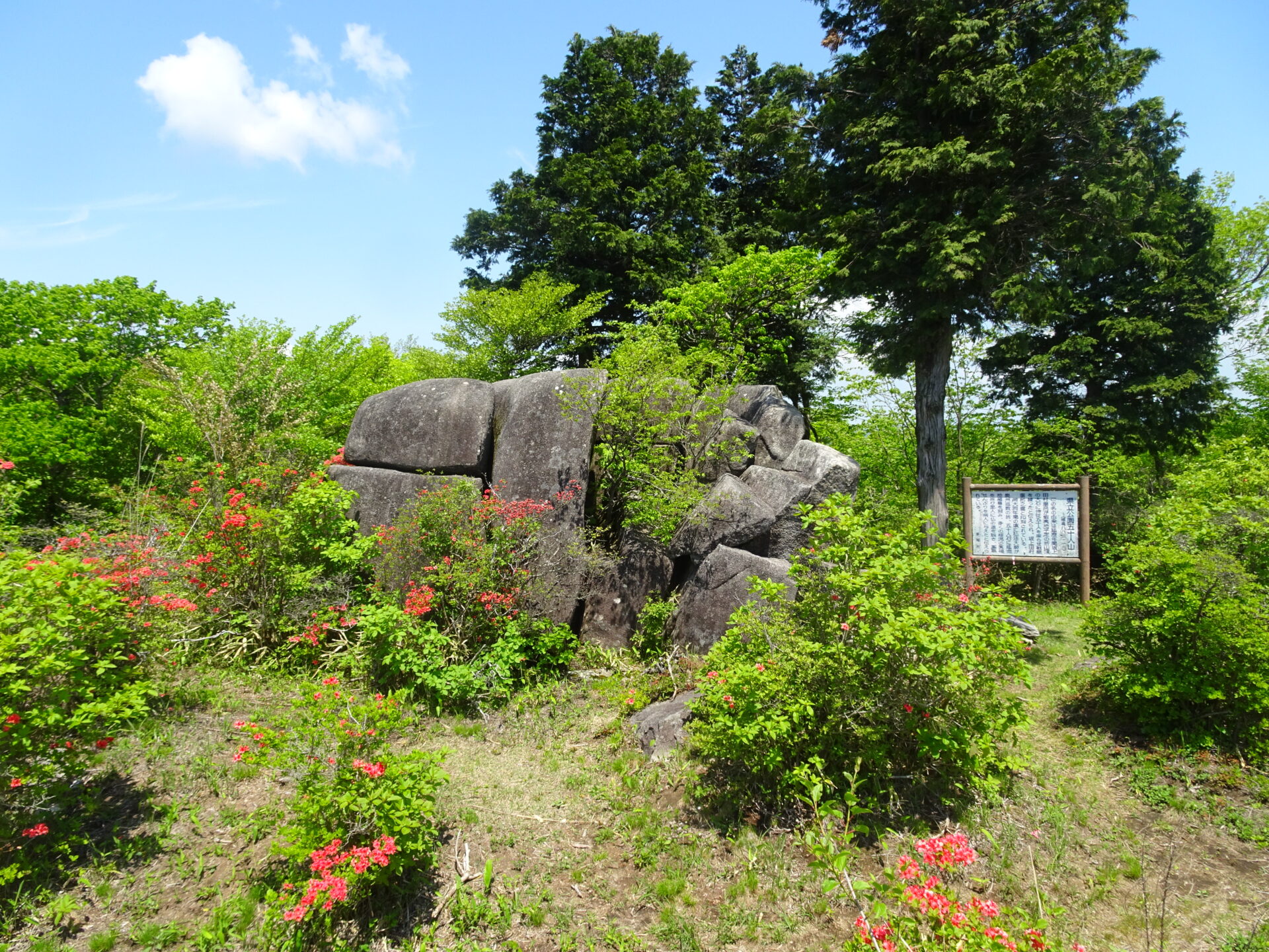 標高883m、山頂にある坂上田村麻呂の家臣50人の武将が座ったという五十人石のから西側を見ると、阿武隈の山々を見渡すことが出来ます。5月にはヤマツツジとスズランの花が山頂を彩ります。登山道は緩やかで登りやすく、のんびりと森林浴を楽しみつつ登っていただけます。