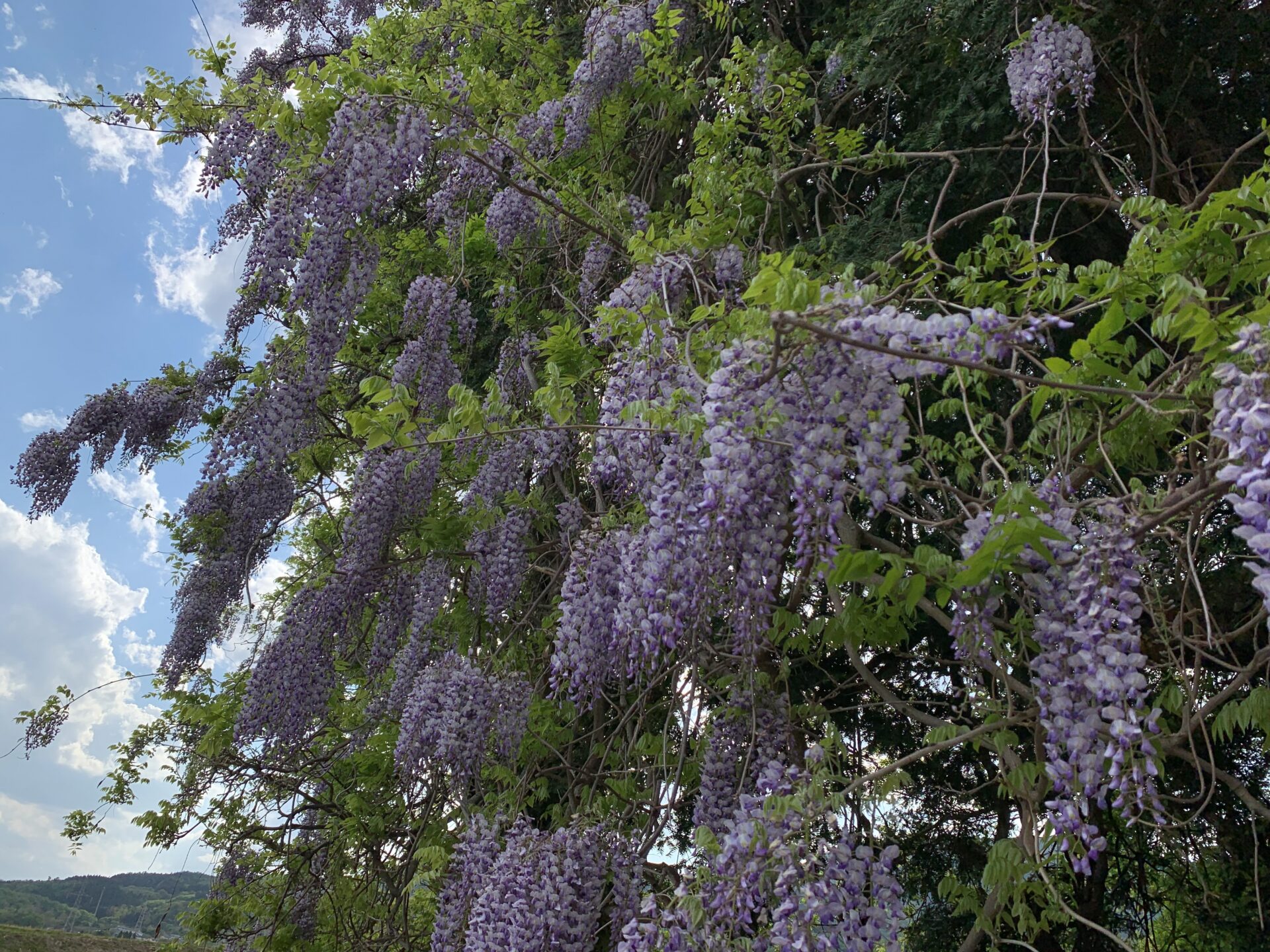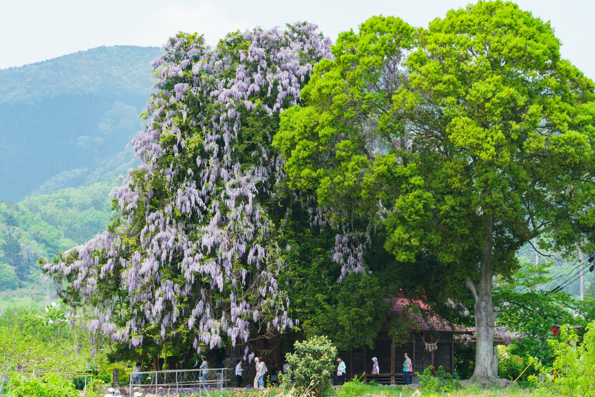 巻き付く大藤は例年ゴールデンウイーク(GW)前後に、