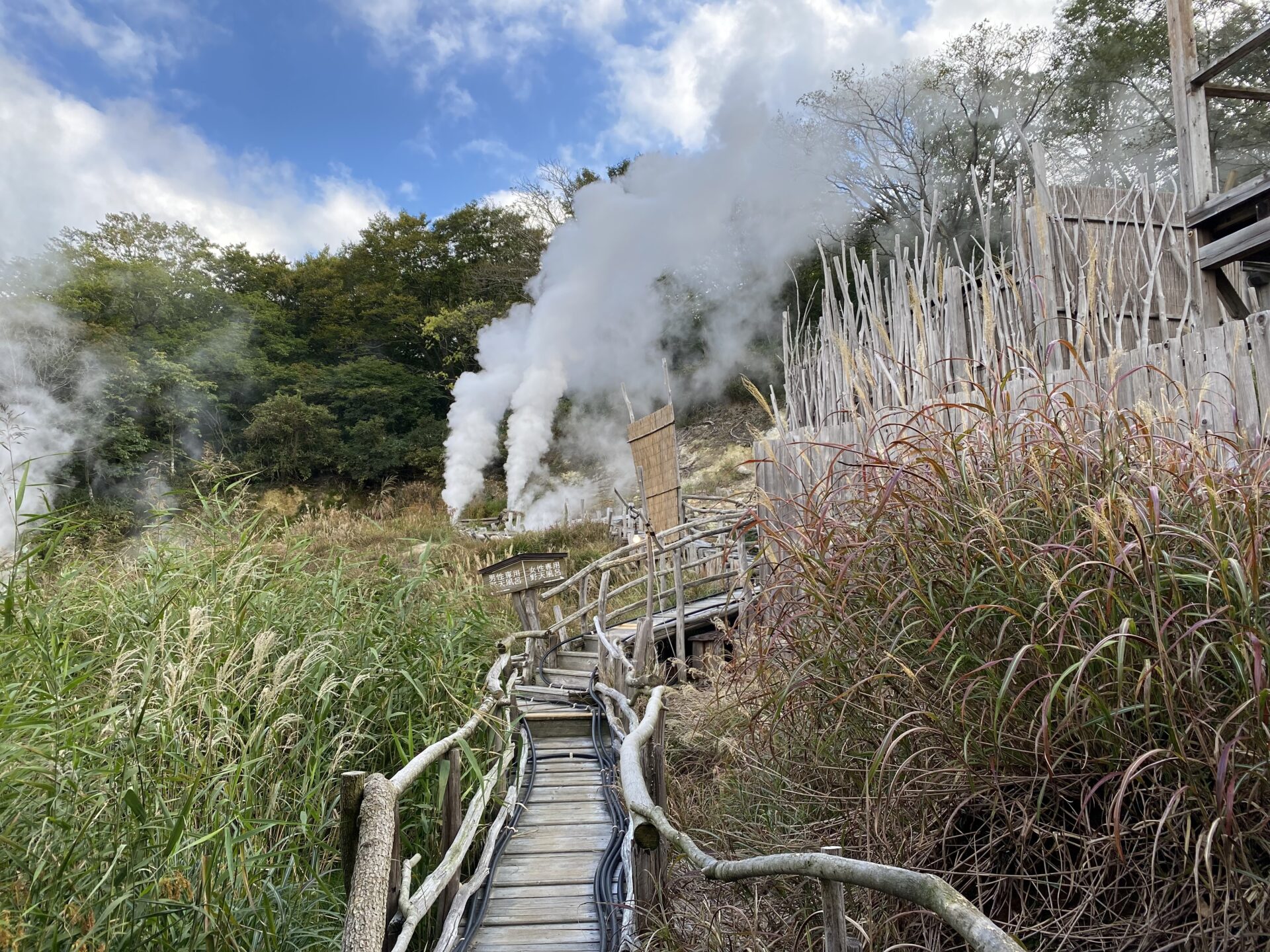 海抜1200メートルにある秘湯。源泉かけ流しで昔から胃腸、神経痛の名湯として知られております。鬼面山の山肌を眺めながら白い噴気と乳白色の温泉をお愉しみいただけます。