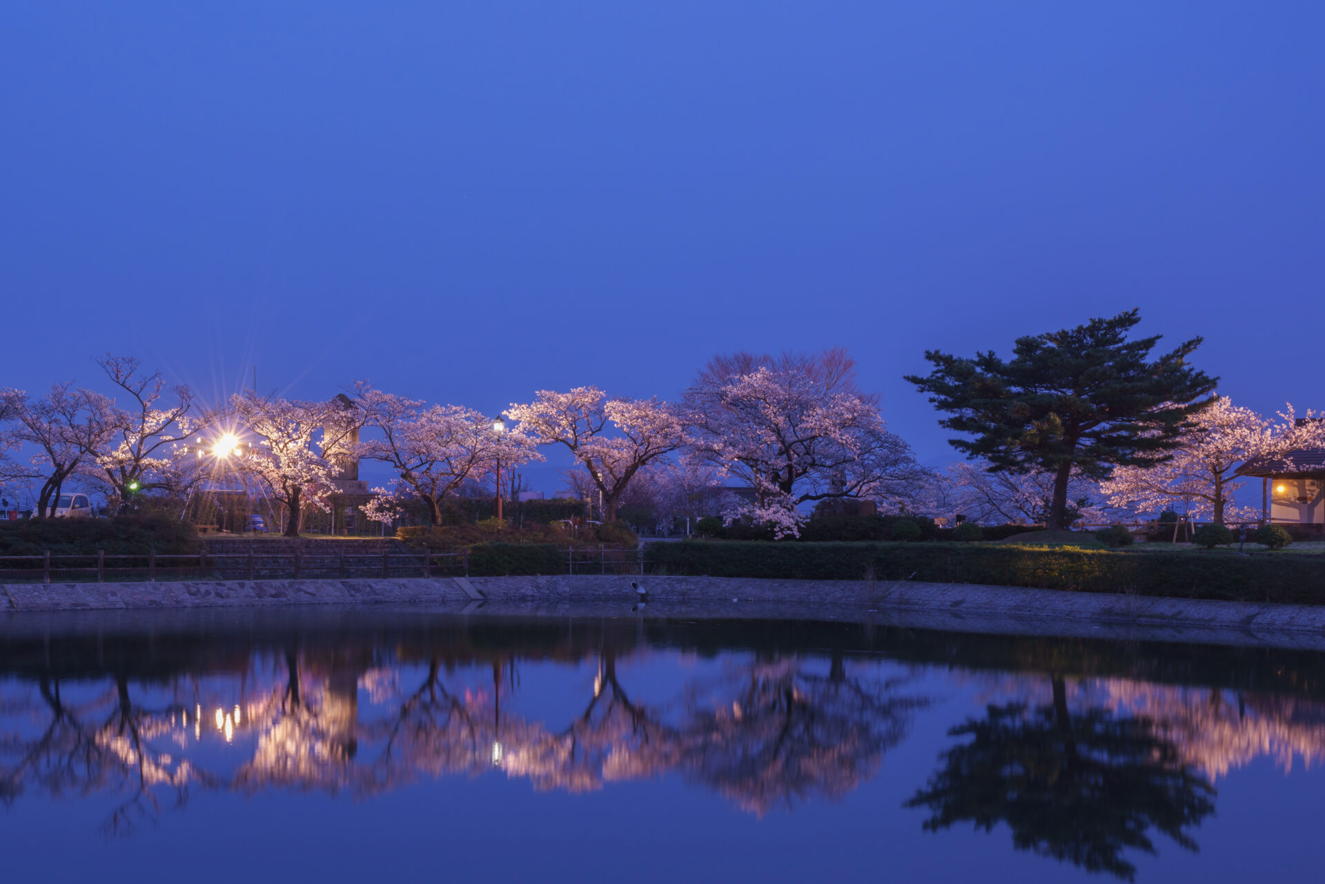 桜のライトアップが行われ、夜桜を楽しむことができる。