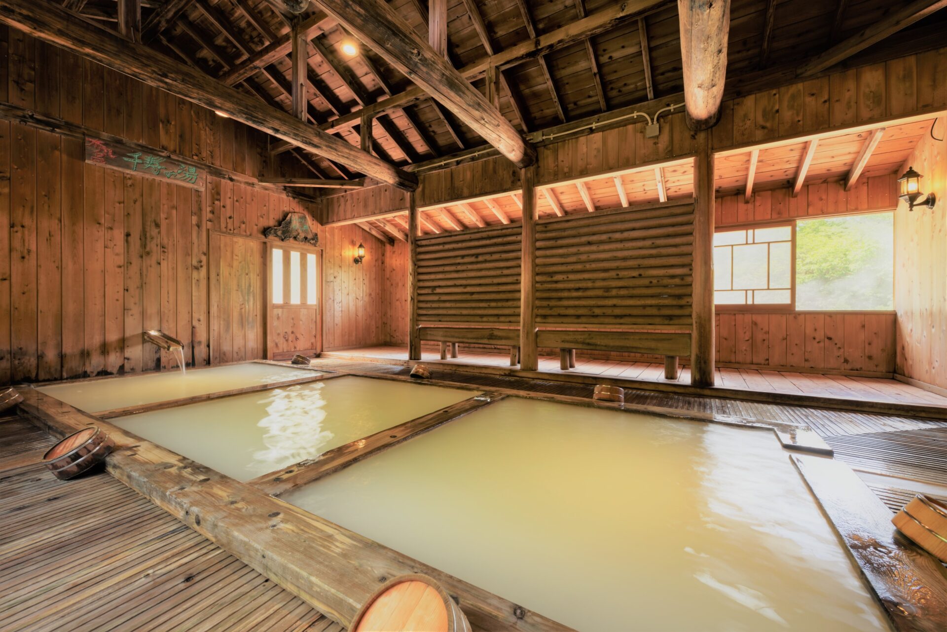 源泉100%のお湯は乳白色でやわらかい肌触り。