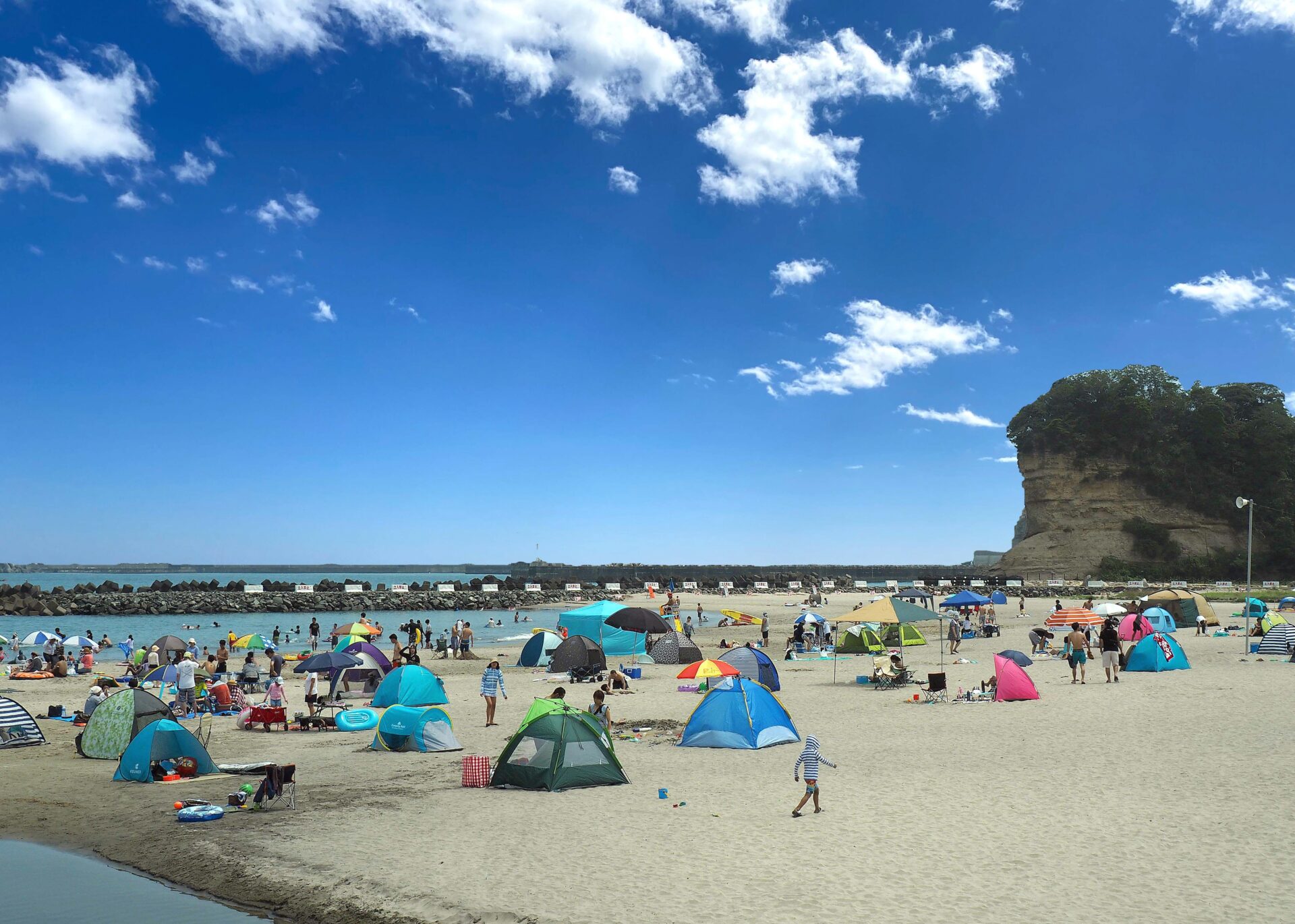 駐車場、シャワー、更衣室が完備されており、毎年多くの海水浴客で賑わいます。電話番号:0246-22-7477(いわき市観光振興課)