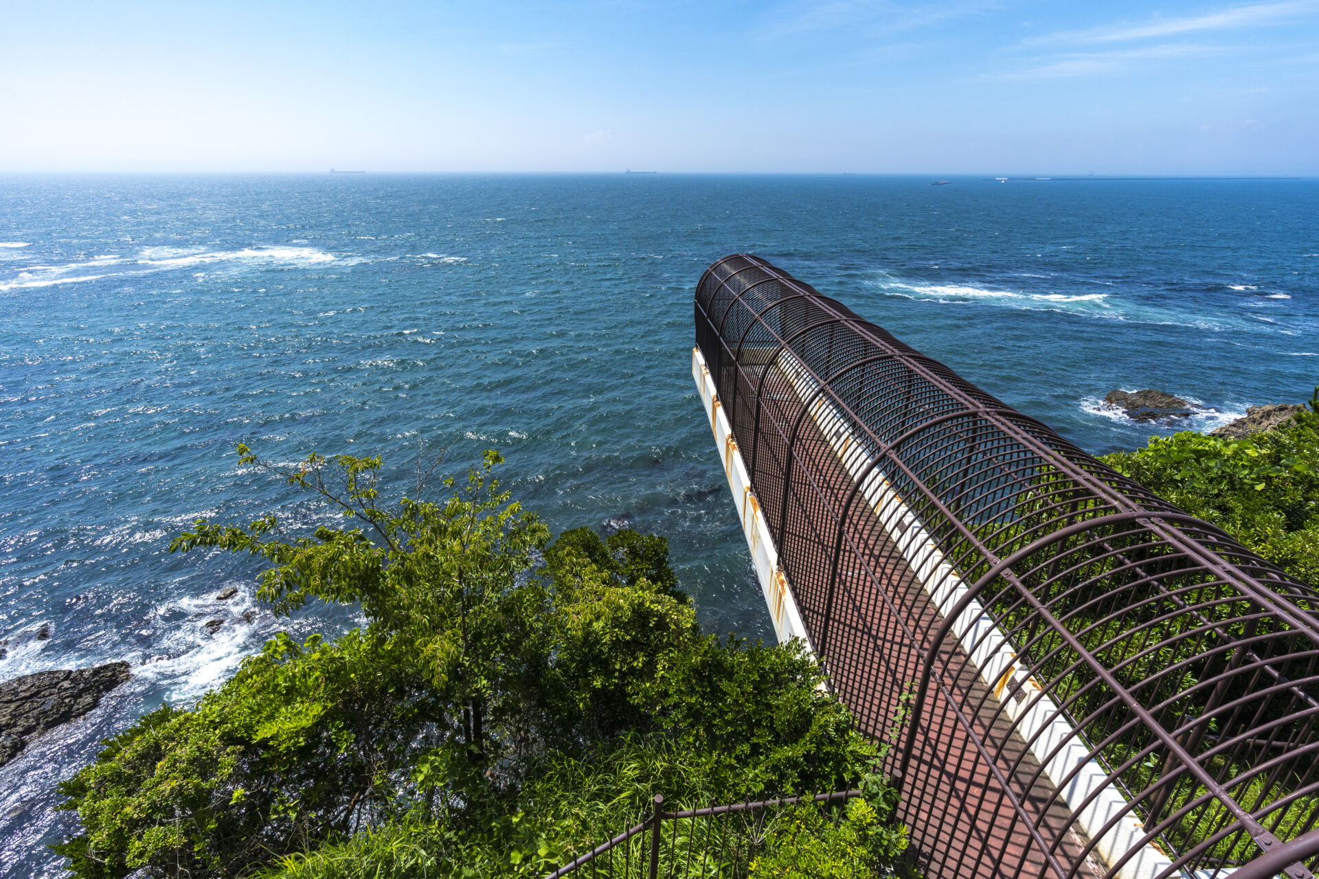 薄磯海岸の海抜73mの断崖に立つ白亜の灯台で、明治32年(1899年)に開設されました。全国に16基しかない「のぼれる灯台」の一つです。 今でも沖合40kmの海上まで光を放ち、船の安全を守っています。…