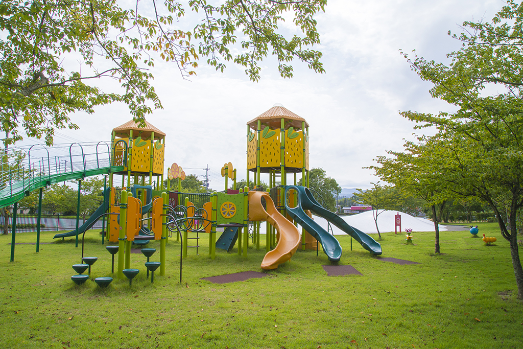 36ホールを有するパークゴルフ場をはじめ、大型遊具のある遊具エリア、バーベキュー広場、体育館などのある総合公園です。園内のフラワーパークでは広野町産バナナ「綺麗」の栽培風景を見ることもできます。