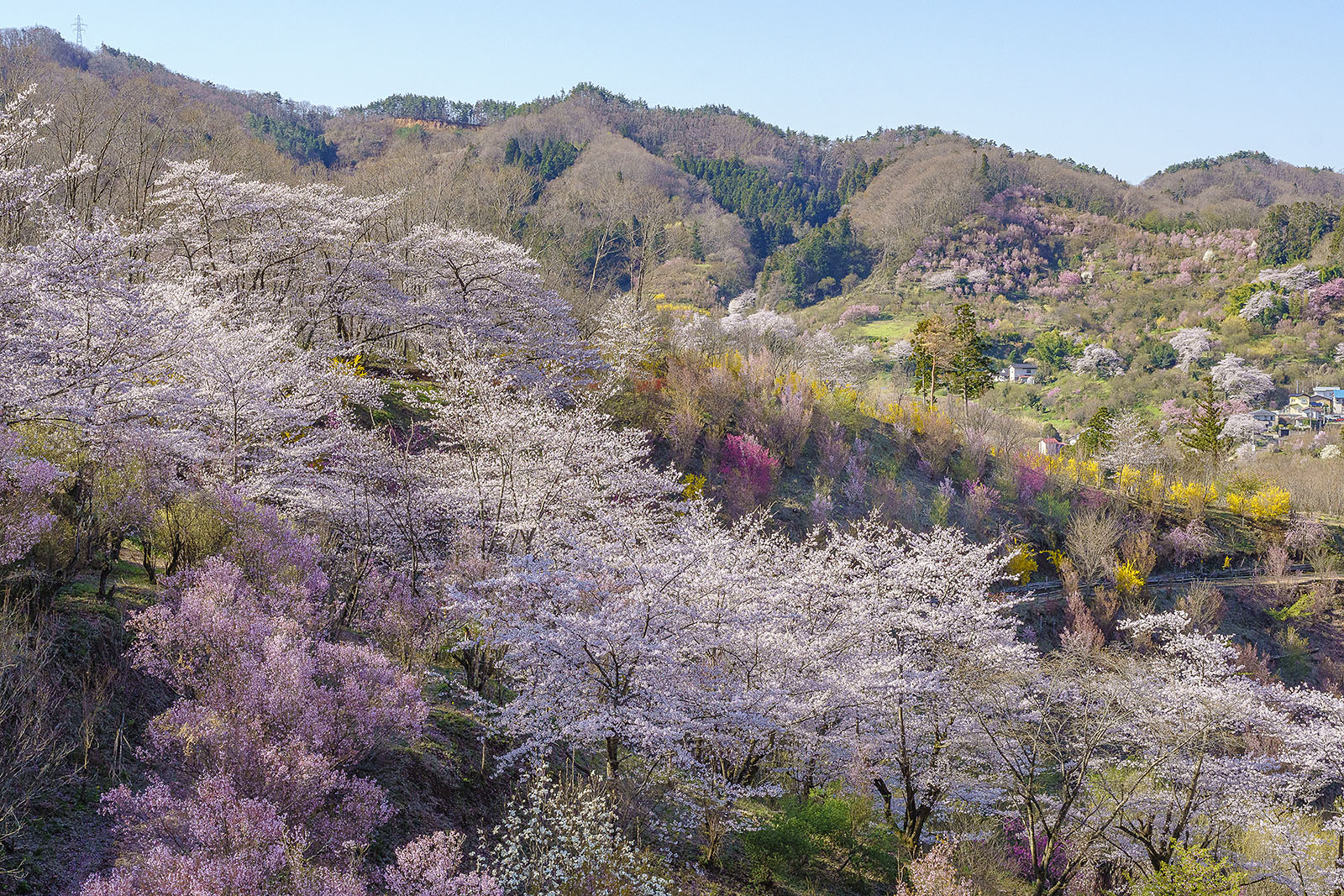梅や桜だけでなくハナモモ、レンギョウ、モクレンなどが一斉に咲き誇る花の名所です。その美しさは写真家の故秋山庄太郎氏に「桃源郷」とまで言わしめるほど。春になると約70種類の花が次々と咲き競い、周辺の花…