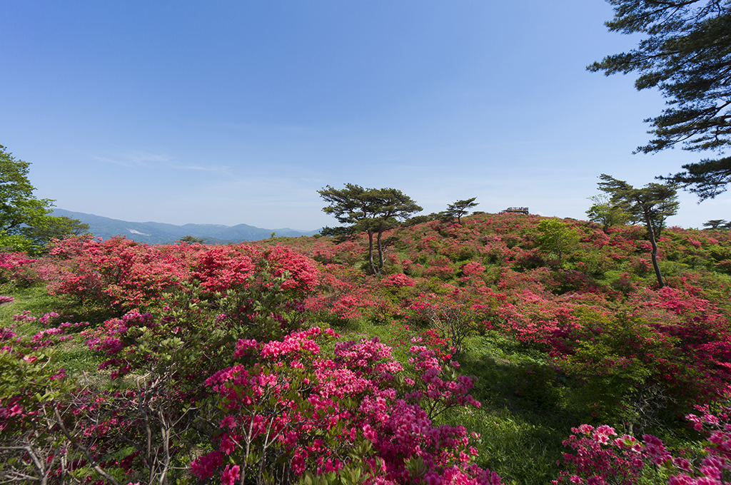 山容の美しさから田村富士とも呼ばれ、田村市船引町のシンボルとなっています。 車で山頂近くまで行くことができ、山頂からは吾妻連峰・安達太良山が見渡せます。 5月頃、なだらかな山頂に約1万本のツツジが花を…